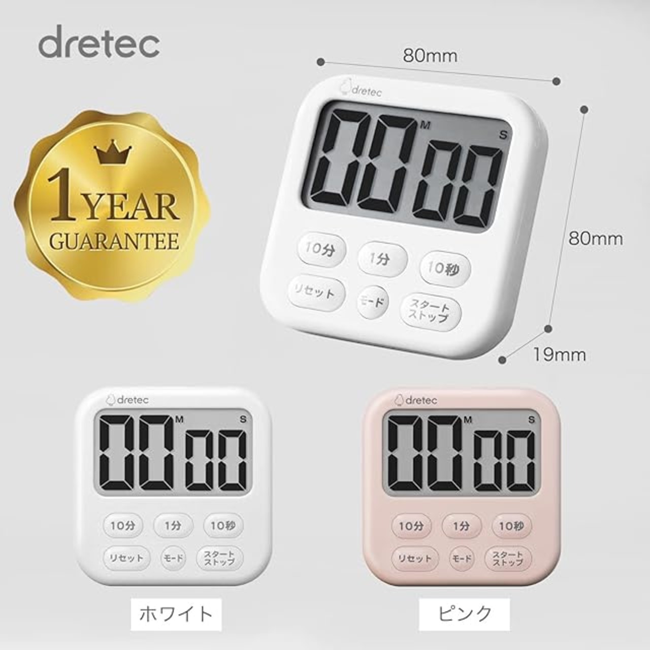 【機能性に優れたタイマー】料理や勉強など時間を管理したい時に役立つdretec(ドリテック)のデジタルタイマー「シャボン10」。充実したタイマー機能に加えて、表示が見やすい大画面タイプ。さらに、独立した10キーボタンでタイマーセットもらくらく! 誰でも簡単に使えるので、子どもの学習用としてもおすすめです。