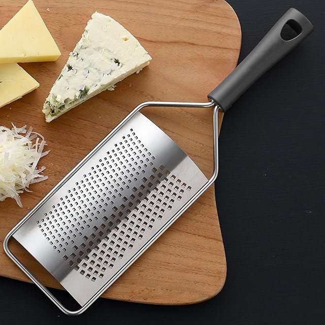 【かんたん多用途】軽い力で食材を往復するだけでおろせます。ハードチーズ、レモンや柑橘類の皮、、繊維のある生姜や、にんにく、チョコレートなど色々な料理に使えます。