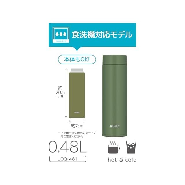 【せんとパッキン一体型・食洗機対応】 サーモス 水筒 真空断熱ケータイマグ 480ml カーキ 隅々まで簡単に洗える 全てのパーツ食洗機OK ステンレス ボトル 軽量コンパクト JOQ-481 KKI