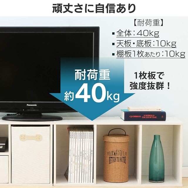 耐荷重:全体40kg、天板・底板10kg、棚板1枚あたり10kg