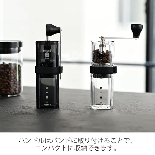 HARIO(ハリオ) コーヒーミル・スマートG PRO コーヒー豆24g 透明ブラック ステンレス刃 分解可能 コンパクト MSGS-2-B