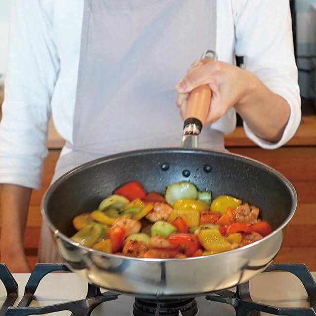 素材・材質:本体/アルミニウム合金、内面/ふっ素樹脂加工(ダイキンSilkwareSD)、外面/ミラー仕上げ、底面/ステンレス板圧着、取っ手/天然木
