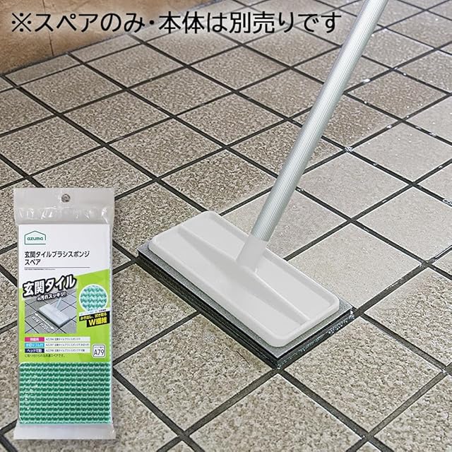 スペアのみ・柄は別売りです。 「AZ294玄関玄関タイルブラシスポンジF」「AZ297玄関タイルブラシスポンジF水切り付」の専用取り替えスポンジです。玄関タイルや外壁を力を入れてゴシゴシブラッシングできます。ダブル繊維の効果で洗剤を使わず水に濡らしてこするだけで汚れをしっかりかき出します。