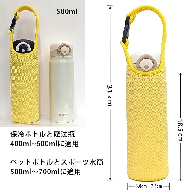 【水筒とペットボトルに適用】弾力性がある特殊な材料で作られて、ボトルのサイズに合わせて広げることができます。ボトル底の直径は6cmから7cmに適用、400ml~600mlの魔法瓶と保温ボトル、500ml~700mlのペットボトルとスポーツ水筒に適用。