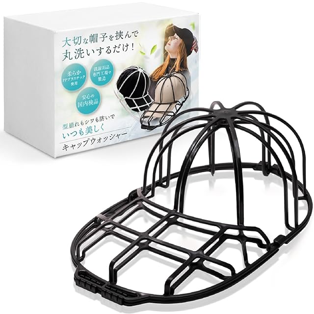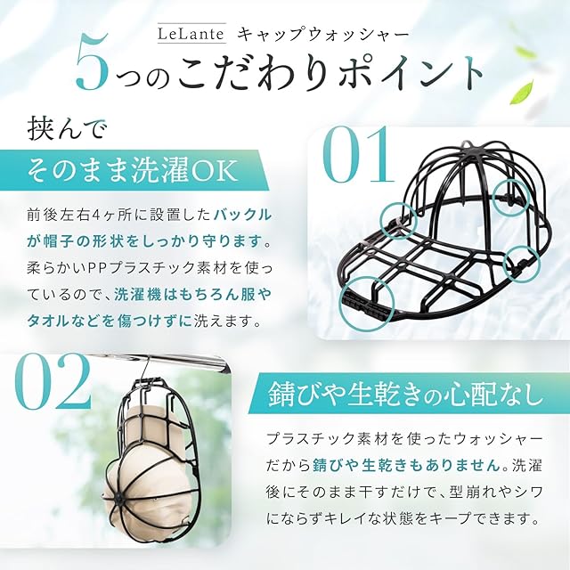 【anan掲載モデル】 LeLante キャップウォッシャー 帽子 洗濯 型崩れ防止 洗濯機 野球帽ウォッシャー 大人用 子供用 収納 吊り下げ収納 (ブラック)