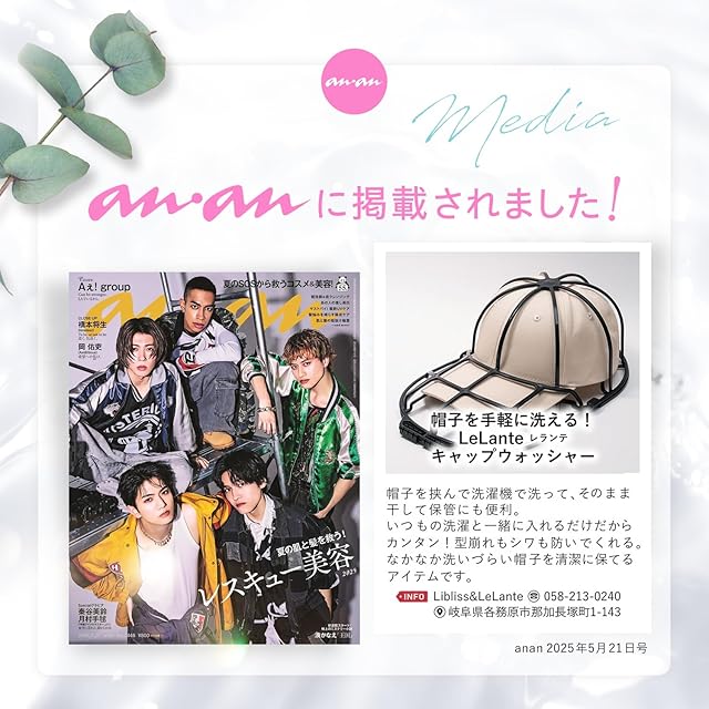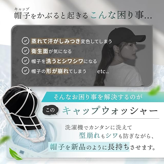 【選ばれる理由】 LeLante キャップウォッシャー がついに正式販売開始。帽子 についた汗で変色、帽子 のにおいが気になるけど洗い方がわからない...そんな方にピッタリ!スポーツなどをしてついてしまう汗や泥、ファンデーションなどの汚れをいつもの洗濯と一緒に入れるだけで簡単に落とすことができます。