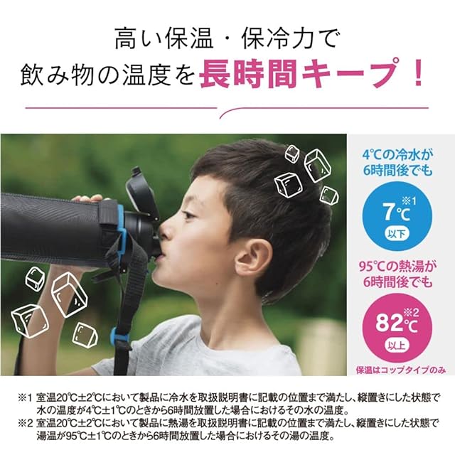 95℃の熱湯が6 時間後でも80℃以上/4℃の冷水が6 時間後でも7℃以下