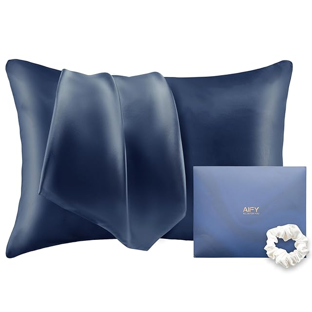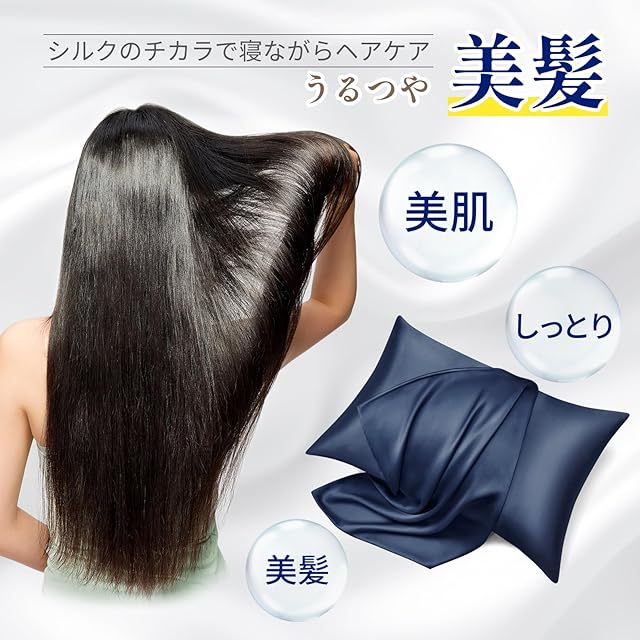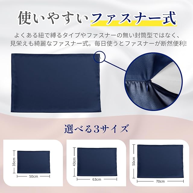 AIFY シルク枕カバー 【TVで紹介】 片面100%シルク 6Aクラス 枕カバー 美髪 美肌 髪の毛のダメージ減少 サラサラ ひんやり 保湿 通気性 洗える 敏感肌に優しい 抗菌防臭 静電気防止 摩擦軽減 ファスナー式 1枚セット 43×63cm ネイビー