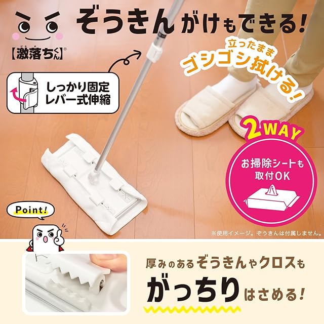 レック 激落ちくん クリップ式 ワイパー (伸縮)/ぞうきん・クロスもOK/ガッチリはさめる/床に密着 立体クッション