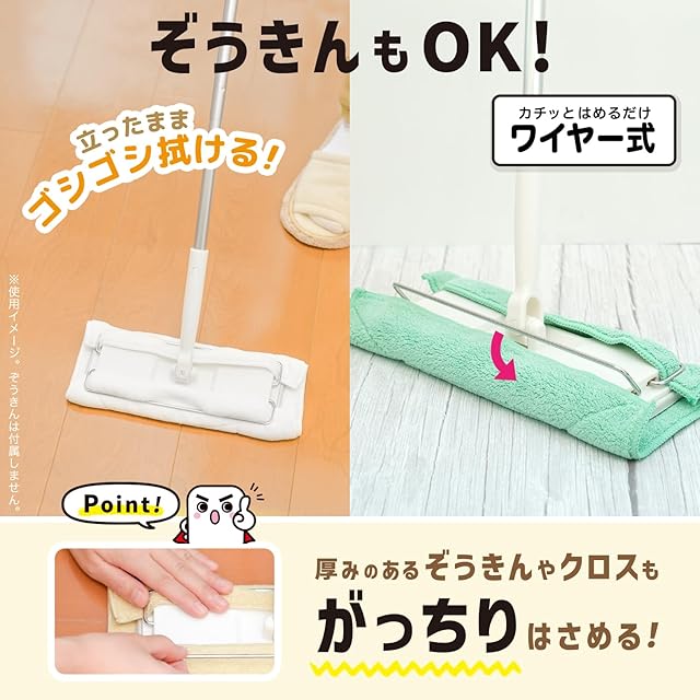 使い捨てのお掃除シートだけではなく、ゴシゴシ拭けるぞうきんにも対応できる2WAYタイプです。