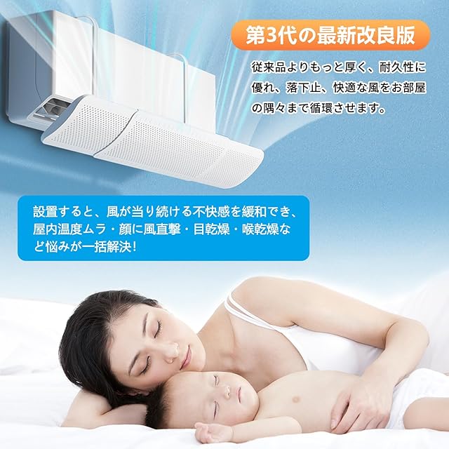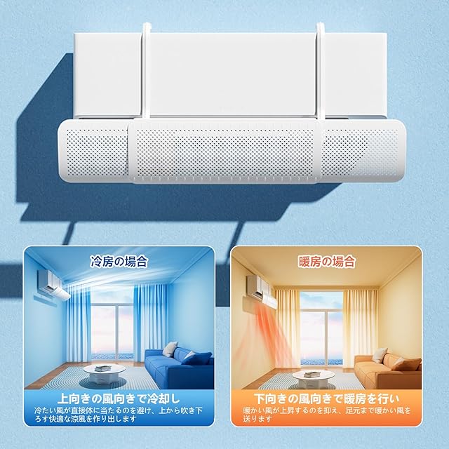直撃風防止:エアコンの直撃風を解消し、快適な風をお部屋の隅々まで循環させます。空気を効率的に循環させることで、「暑すぎ」「冷えすぎ」といった温度ムラを解消でき、省エネ効果が期待できます。そして、リモコンの操作も正常的に使えます