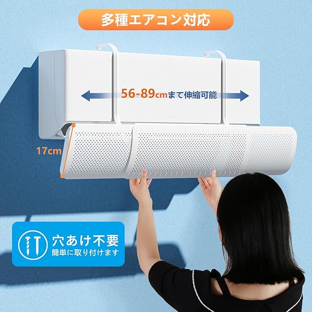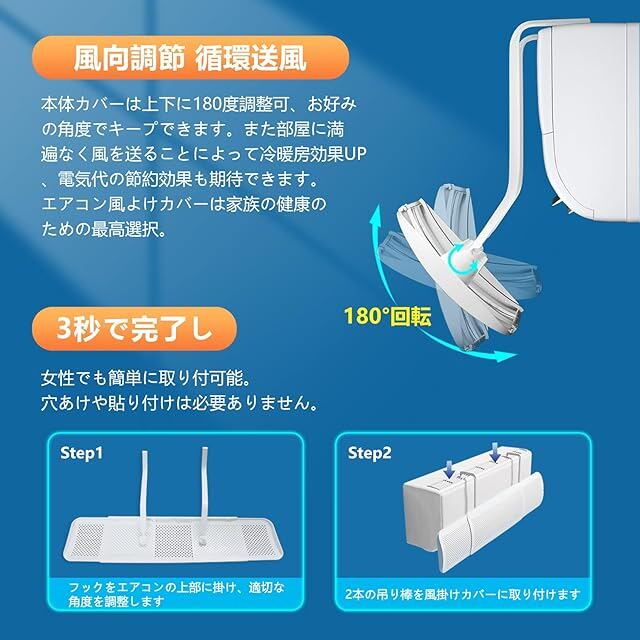 商品名:Tivcyi エアコン風よけカバー エアコン 風除け 風向き上下180°調整 エアコン風よけ 直撃風防止 壁掛け式 伸縮自在 エアコンカバー 空気循環 節電 省エネ 取り付け簡単 3秒だけ組み立て完了 冷房暖房通用 結露対策 長さ調整可 56~89 cm