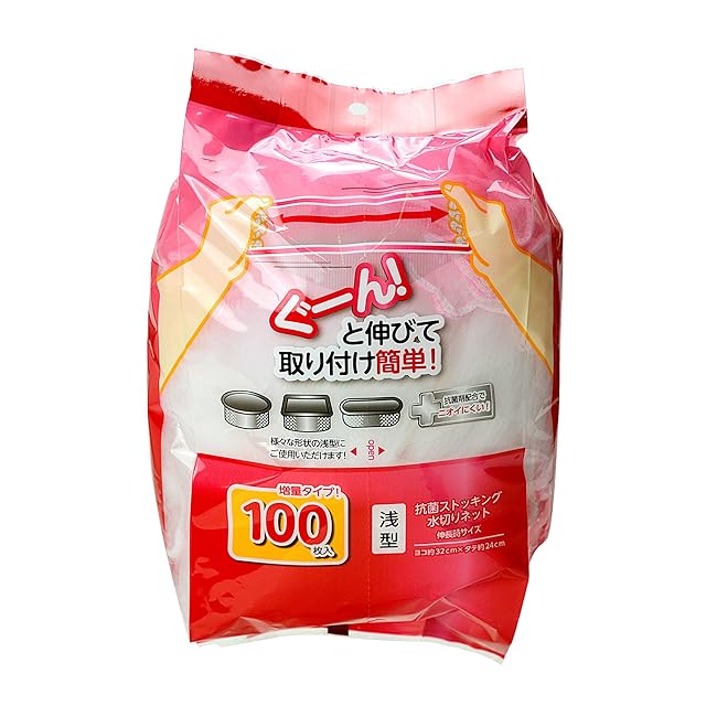 ストリックスデザイン ストッキング 水切りネット 浅型 抗菌 100枚 約32×24cm ぐーん! と伸びて取り付け簡単 排水口 排水溝 ネット 大容量 SA-093
