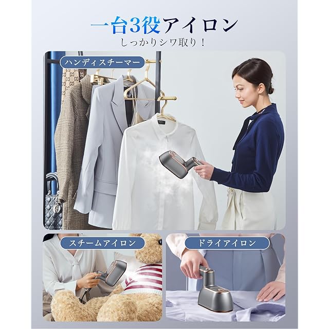 アイロン スチームアイロン 衣類スチーマー ハンガーにかけたまま ハンディ 小型 折り畳み式 iron あいろん パワフル連続スチーム シワ伸ばし 軽量 連続スチーム 除菌 脱臭 コンパクト ミニ ポータブル ハンディ 携帯アイロン 150ml スタンド付き 家庭/出張/旅行