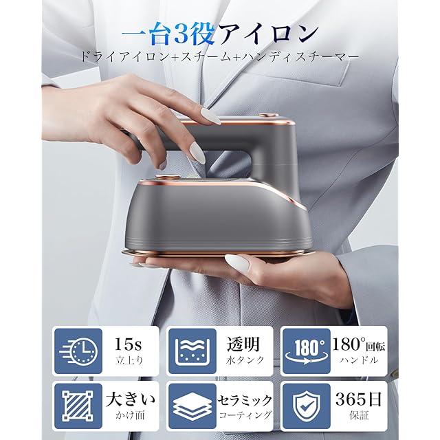 【しわ取り・除菌脱臭】80cmまで噴射するパワフル高温スチームは、アイロンの噴射口付近にある溝によってより広面積に届けられ、1~2往復だけでもシワをしっかり伸ばすことが可能です。また、高温スチームの働きにより、熱で殺菌するだけでなく、スチームが臭いの粒子を包み込みながら飛ばしてくれますので、洗いにくい服や、頻繁に洗濯できない衣類にもしっかり対応できます。アイロンは出荷前に水圧テストを行っており、正常にご使用いただけることを確認しております。製品到着時に内部に少量の水跡が確認される場合がありますが、これは検査工程によるもので、中古品ではございませんのでご安心ください。