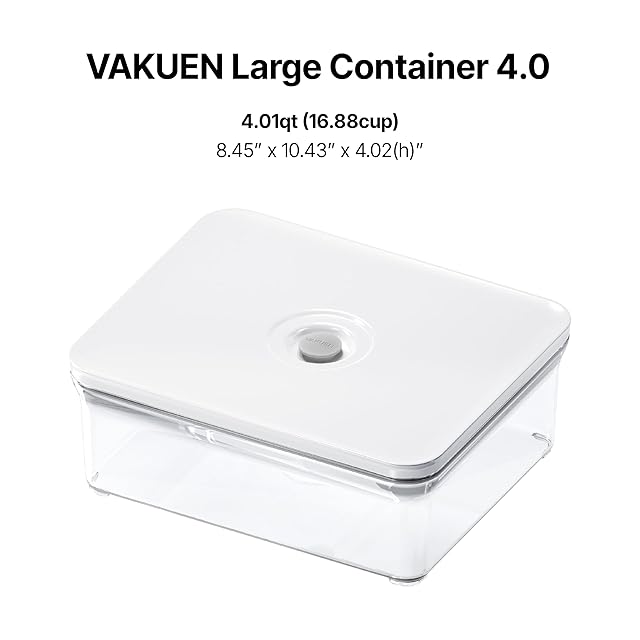 VAKUEN (ヴァクエン) プレミアム 真空 密閉 食品保存 大型容器 4L 1個 スマートワンクリック密封蓋 ヒンジなし設計 特許取得済みダブルシリコンパッキン 100%漏れ防止 BPAフリー
