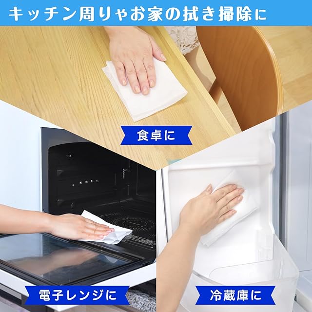 食卓・冷蔵庫・電子レンジに。洗剤を使用していないので二度拭き不要。キッチンまわりのお掃除に便利です。