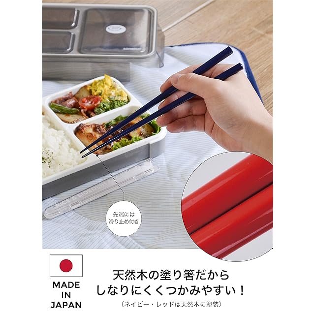 シービージャパン(CB JAPAN) 箸 [ケース付き] ネイビー 食洗機対応 弁当用箸 20.5cm カチャカチャ鳴らない 出し入れしやすい専用ケース 天然木 塗り箸 DSK