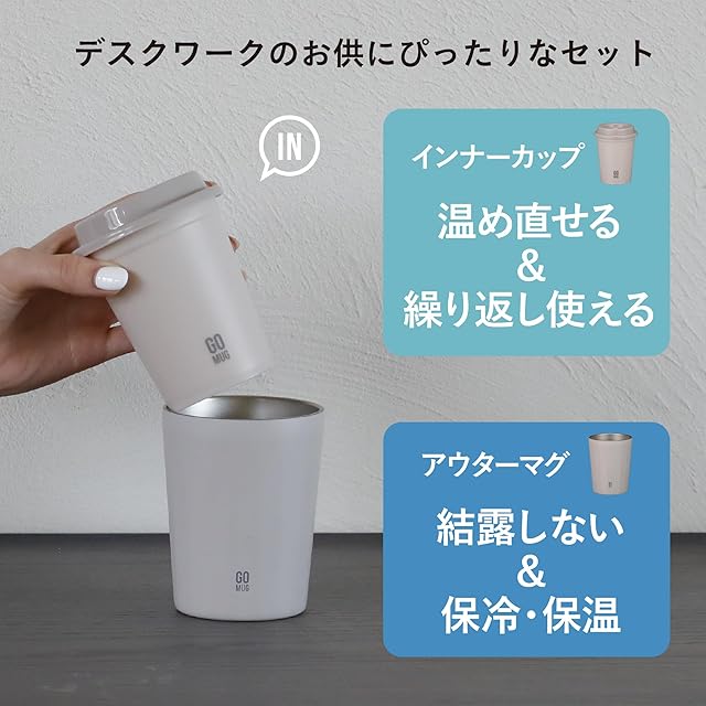 洗って繰り返し使える"樹脂製カップ"と、真空断熱2層構造でしっかり温度をキープしてくれる"ステンレスマグ"が一緒になった「GOMUG(ゴーマグ)カップセット」