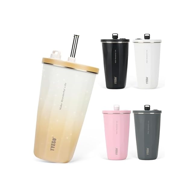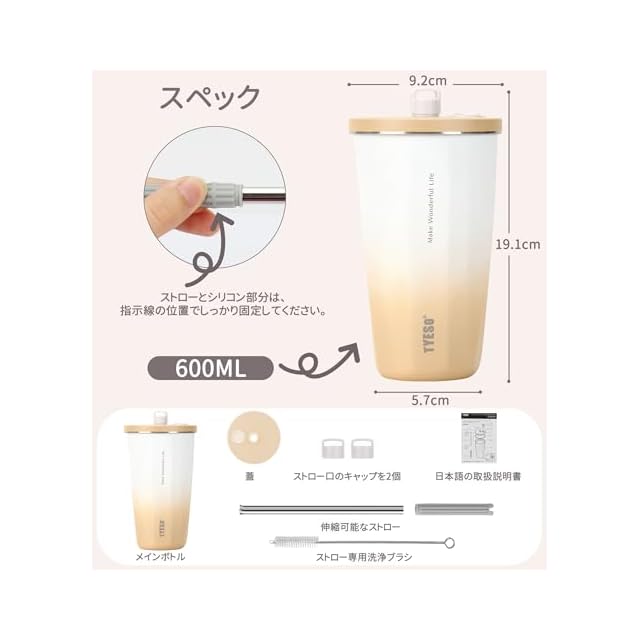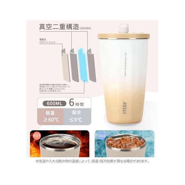 【SNSで話題】TYESO タンブラー ストロー付き 600ml ステンレス 蓋付き 真空断熱 保温 保冷 アウトドア 持ち運び便利 直飲み 漏れない 大容量 多色 トラベル 2025年アップグレード版