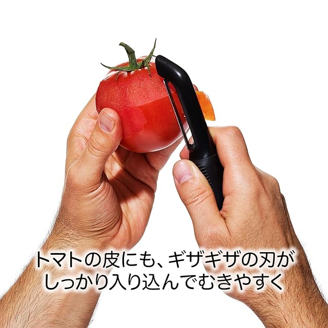 ギザギザの細かい刃で、つるつるして滑りやすいフルーツや野菜の皮を簡単に剥くことができる