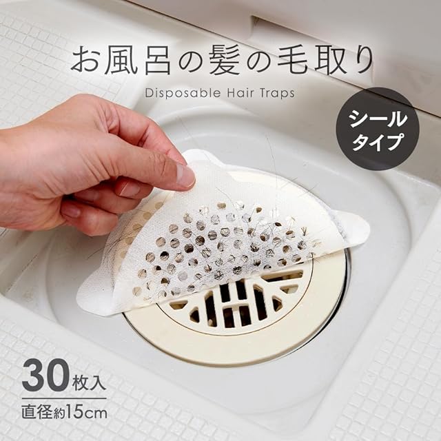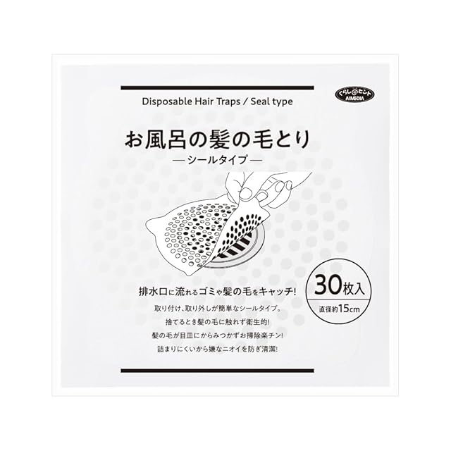 アイメディア(Aimedia) 排水口シール 30枚入 髪の毛取りシート 排水口カバー 排水溝用 お風呂 浴室 掃除 衛生的 お風呂の髪の毛取りシールタイプ