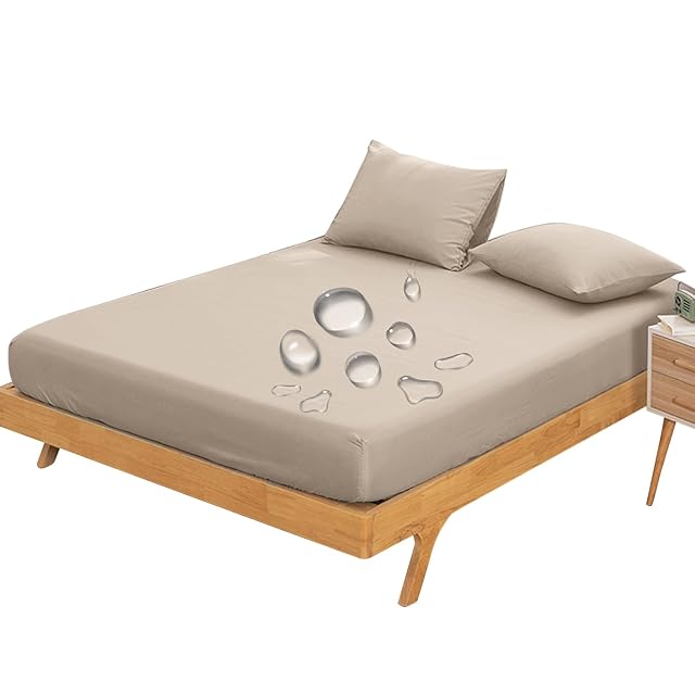 Vallein 防水シーツ 側面完全防水 シングル ボックス 全面防水 マットレスカバー おねしょシーツ ダブル セミダブル ボックスシーツ クイーン 防水 大人用 キング 赤ちゃん ベッドシーツ 介護用シーツ ベビー 保育園 介護用 ペット 防ダニ 丸洗い可能(ダブル·カーキ·140*200)