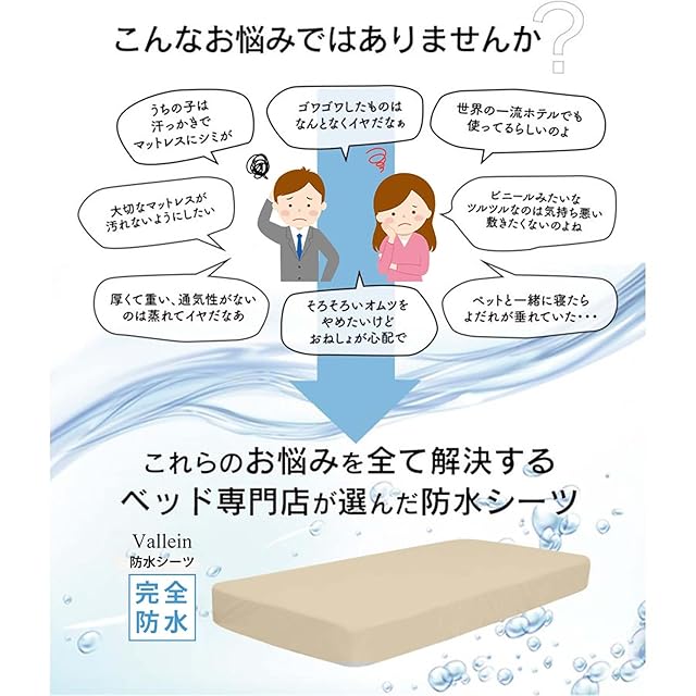【ボックスタイプ・丸洗い可能・各種使用対策】Vallein完全防水シーツは、360°の弾力性のあるゴム製の全カバーで、マットレスを全面的にカバーします。シワになりにくく、取り外しや洗濯が簡単です。市販されているほとんどのマットレスに適しています。自宅の洗濯機で丸洗いでき、いつでも清潔に使用できます。お子様のおねしょ、ペット、尿漏れ、衛生対策に最適です。2枚以上ご購入をお勧めします。