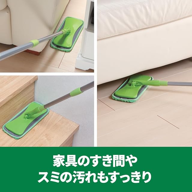 【360度回転可能なモップヘッドで、床掃除が楽々に】 小回りがきくモップヘッドで、スムーズにお掃除ができます。テーブルの下や椅子の脚まわり、お掃除しにくい狭い家具のすき間や階段までモップですっきり拭けます。