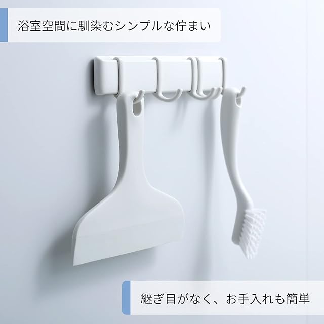 【フック穴付きで浮かせて収納】穴付きなので、フックに掛けて収納できます。シンプルなデザインで浴室のインテリアを邪魔しません。