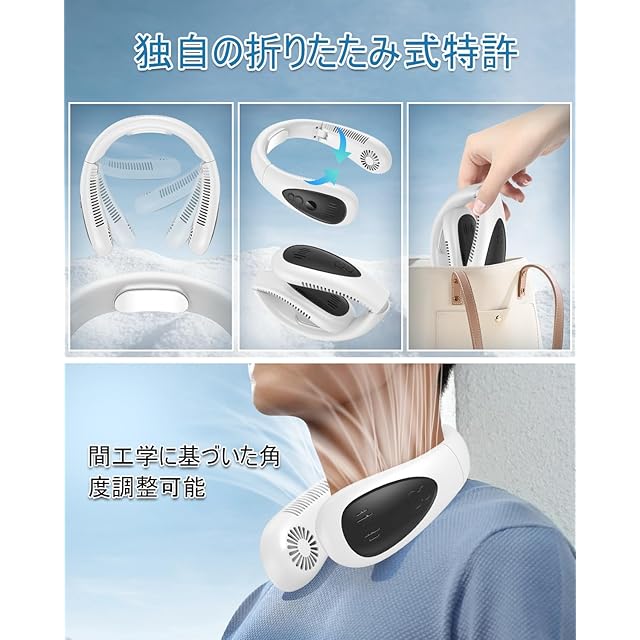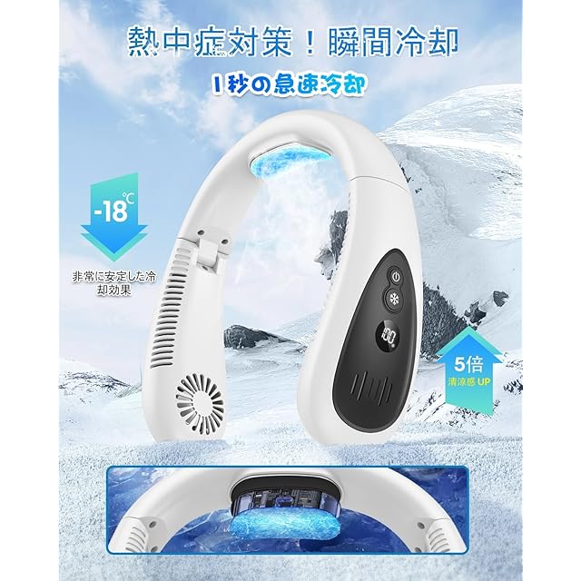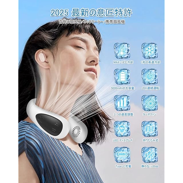 【2025世界的なヒット ネッククーラー 】首掛け扇風機ネックファン携帯扇風機 瞬間冷却5000mAh大容量 Type-C急速充電20時間連続使用羽なし風量3段階調節 LEDディスプレイマスク蒸れ対策グッズ 持ち運びやすい 折りたたみ式/作業/旅行/スポーツ/通勤/家事/最高のプレゼント