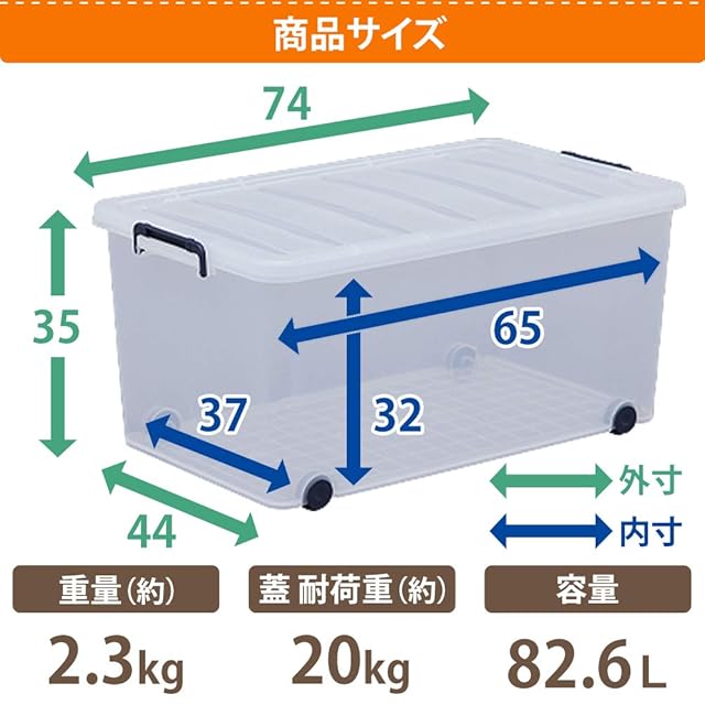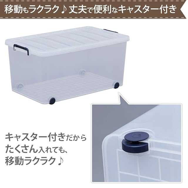 商品名:アイリスオーヤマ 収納ボックス 衣装ケース ふた付き 丈夫 頑丈 大型 キャリー 幅44×奥行74×高さ35cm ネイビー クリア