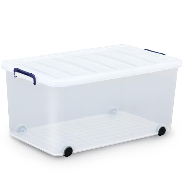 丈夫な樹脂製キャリーボックス / 移動しやすい、コロ付き