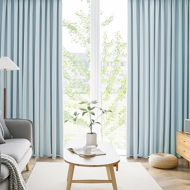 AIFY カーテン 2枚セット 99.9%以上遮光 遮光 小窓 ドレープカーテン UVカット 形態記憶加工済み 断熱 節電対策 昼夜目隠し 保温 おしゃれ 洗える 洗濯機対応 (カーテン2枚) 幅100cm×丈90cm ライトブルー