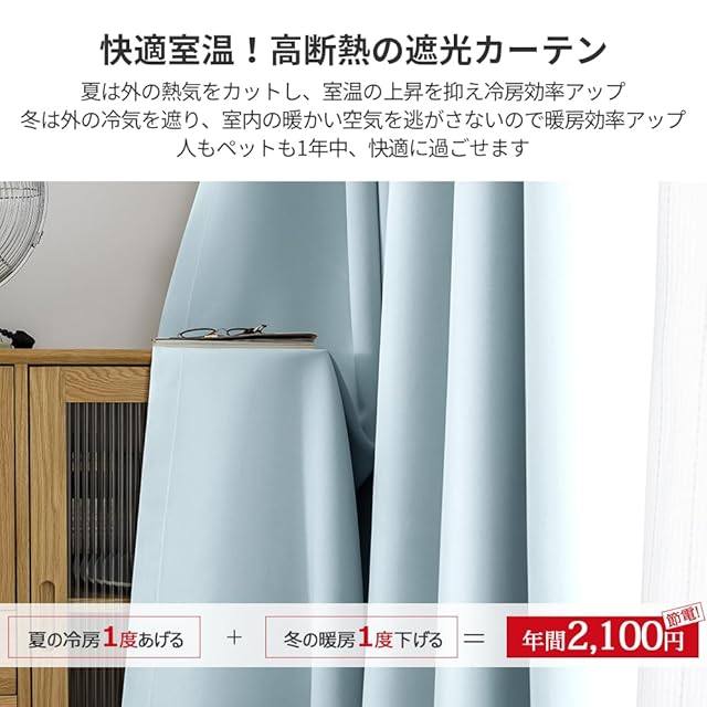 【遮熱保温·形状記憶】届いてすぐ使えるドレープカーテン2枚、同色タッセル付きます。夏は外の熱気をカットし、室温の上昇を抑え冷房効率アップします。冬は外の冷気を遮り、室内の暖かい空気を逃がさないので暖房効率もアップします。ペットにも1年中快適に過ごせます。洗濯機でまるごと洗えます。お手入れしやすいのでいつも清潔に使用できます。カーテンの重みで洗濯ジワも伸ばすことができので、形態安定としてはとても効果が期待できます。