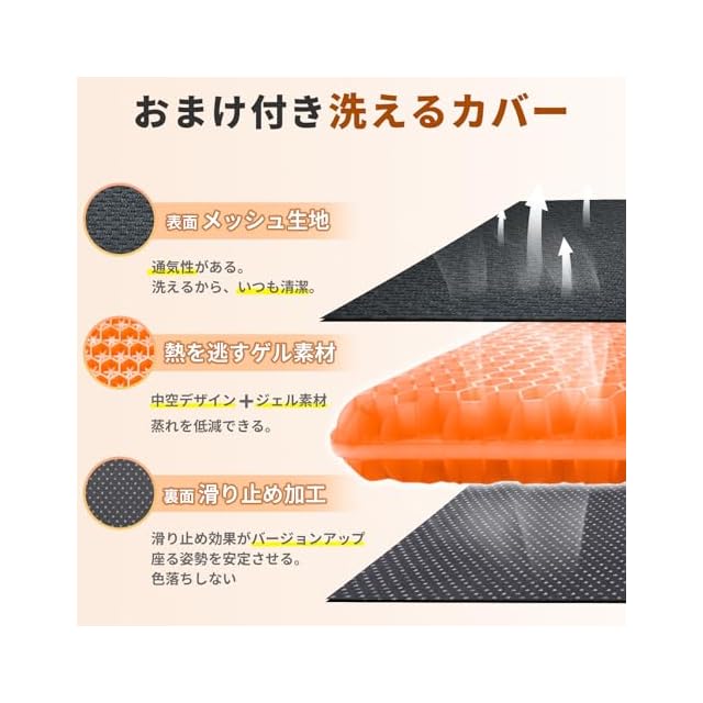 【滑り止め改良版カバー付き・衛生的】従来のドット仕様滑り止めからさらに滑りにくい仕様に変更、カバーは取り外し式なので、洗濯可能です。カバーはメッシュ生地を使用しており、通気性マックス。