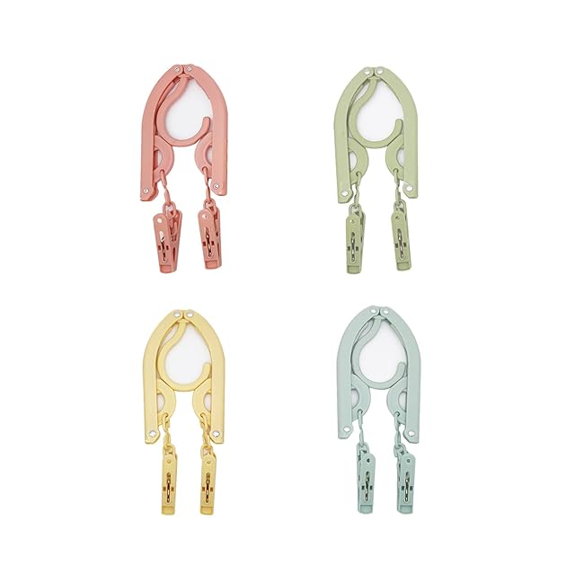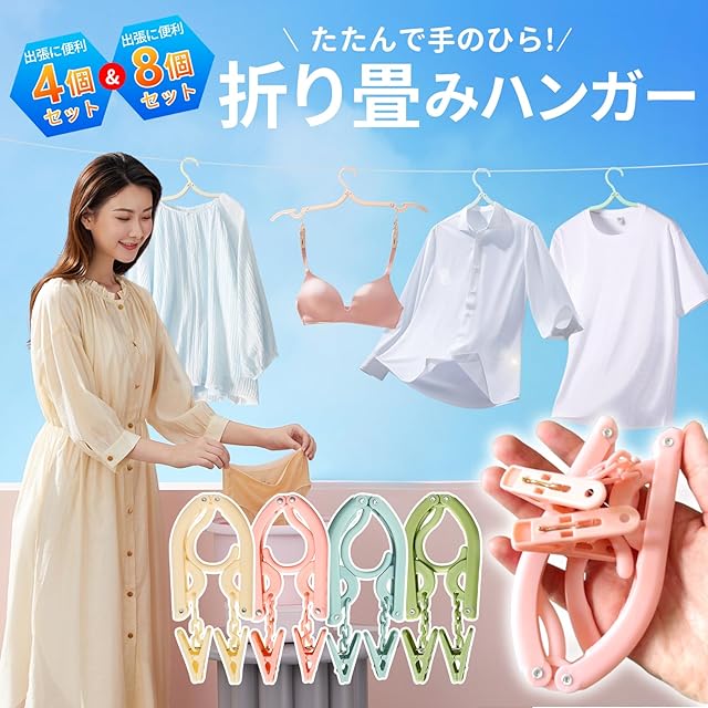 ALLMIRA 折りたたみハンガー 携帯ハンガー 旅行 ハンガー 4色 4セット 8クリップ 折り畳み式 携帯用 洗濯 物干し 便利 軽量 多機能 省スペース 旅行/出張/商務/アウトドアなど ピンチ