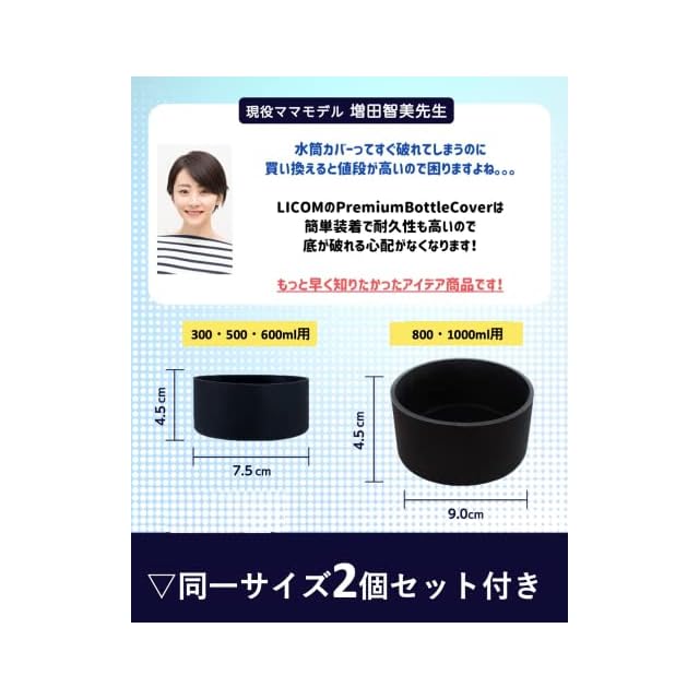 【現役ママさん監修】水筒 底カバー 水筒カバー サーモス対応 シリコン 2個セット [LICOM] … (800ml・1000ml・1500ml用(直径9cm用), ブラック)