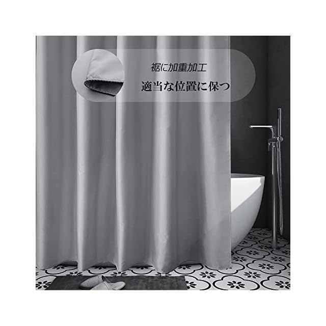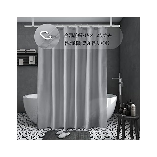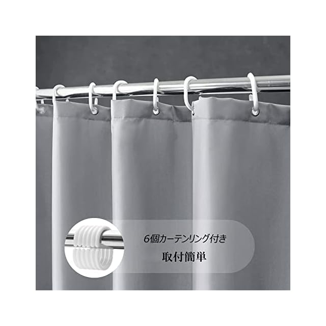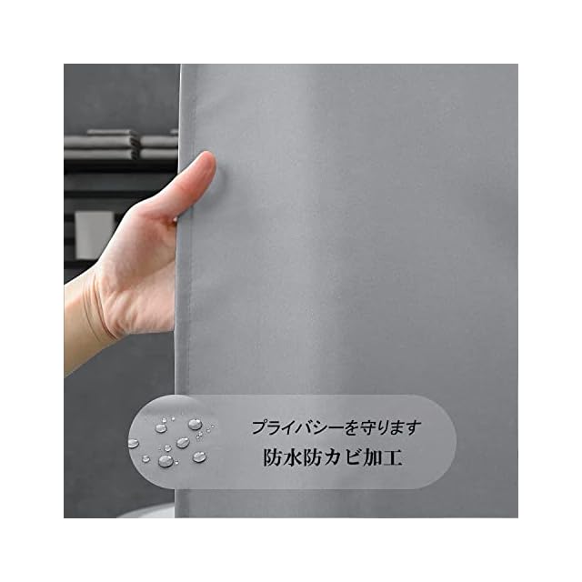 【サイズ】:幅90x丈180cm 素材:100%ポリエステル 仕様:防水防カビ パッケージ内容:本体*1+カーテンリング*6