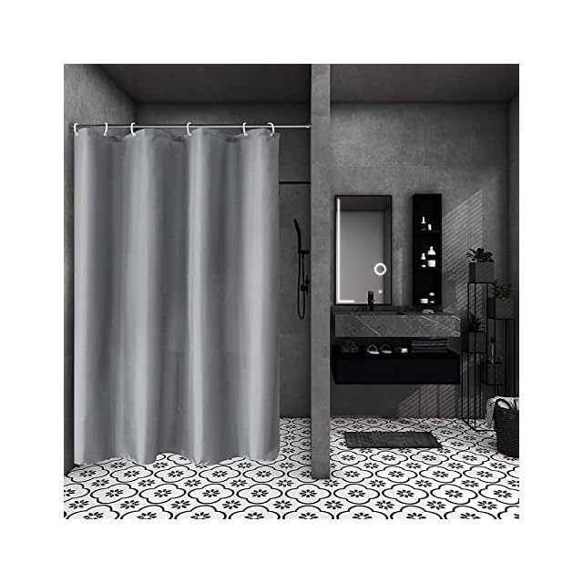AooHome シャワーカーテン 90x150cm 目隠し 遮像 防カビ 防水 風呂カーテン お風呂用カーテン 軽量 速乾ング付き 無地 グレー
