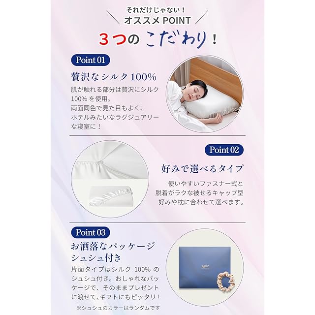 【希少な6Aランクシルク枕カバー】AIFY シルク枕カバーは、片面に希少な6 Aランクのシルクを採用し、もう片面にシルクのような滑らかなサテンを採用しています。シルク枕カバー独特の光沢感で高級感のある一品。100%純粋なマルベリーシルクのなかでも、高品質な6Aランク&19匁の厚みのある生地を厳選しております。天然タンパク質と人肌に極めて近いアミノ酸成分を含んでいるため、敏感な肌の人や赤ちゃん、ご高齢の方でも快適にご利用いただけます。