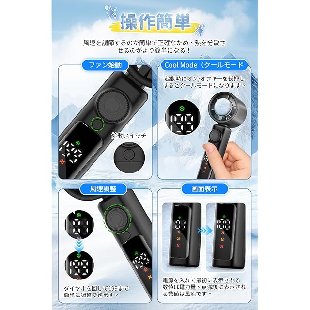 【199段階精密風量調節】当社の携帯扇風機は199段階風量調節機能を採用。1段階(最弱)から199段階(最強)まで0.5%単位の超精密な風量調整が可能で、シーンに応じて理想的な風量をお選びいただけます。オフィス用のそよ風(30-50段階)から睡眠時の微風(10-30段階)、アウトドア用の強風(150-199段階)まで、デジタル制御モーターによるきめ細かな調整可能。ボタンを回してスムーズに風量変更可能。赤ちゃんからアスリートまで、あらゆるユーザーの微妙な風量の好みに応えられる次世代モデルです。従来の3-5段階調節製品と比べ、約40-60倍の細かさで「自分だけの完璧な風量」を見つけられます。