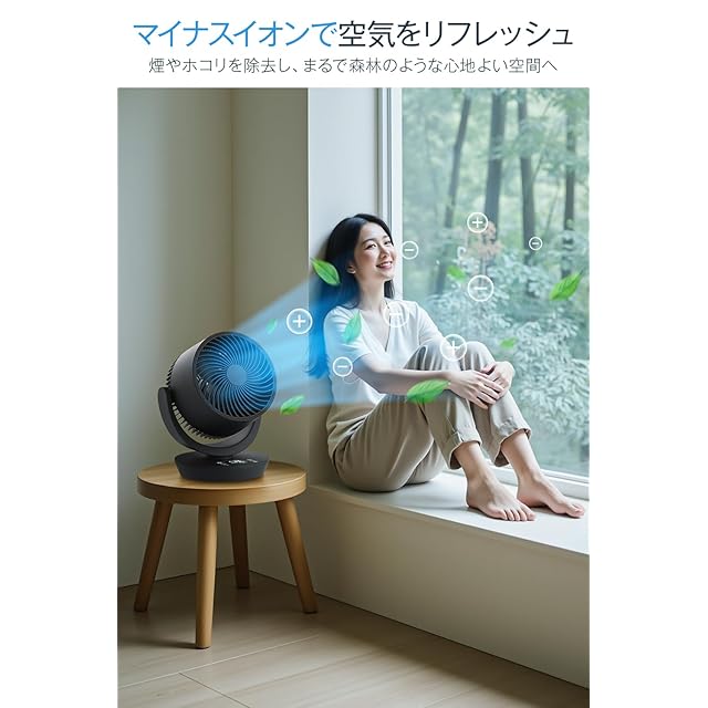 【空気を清潔に保つマイナスイオン送風機能搭載!】送風と同時にマイナスイオンを発生させ、空気中の煙やホコリ、ニオイなどを除去。まるで森林のような清々しい空気をお部屋に広げます。季節の変わり目の花粉対策や梅雨時のこもった空気もすっきりリフレッシュ。除湿器や加湿器との併用で空気環境を最適化し、赤ちゃんや高齢者がいるご家庭にも安心してお使いいただけます。