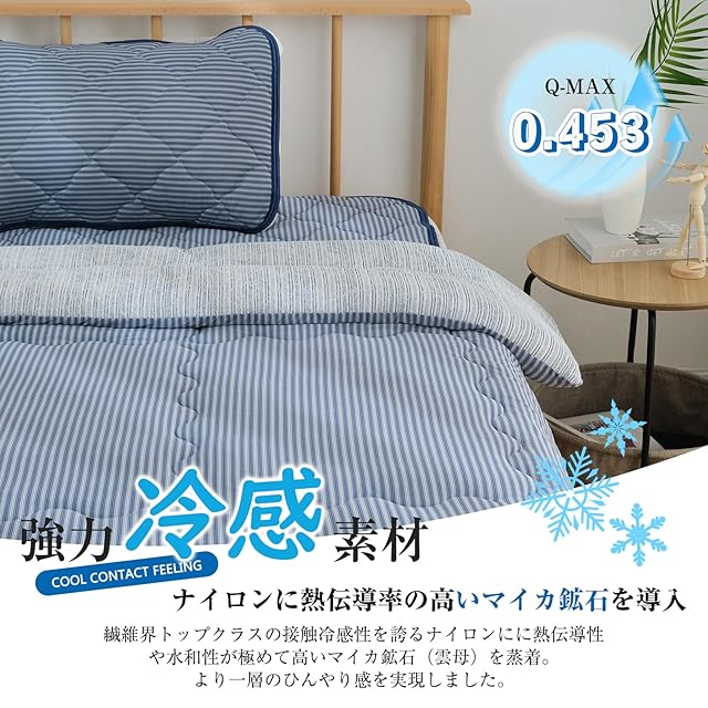 【Q-MAX0.453!ひんやり冷感効果】本品のQ-MAXは0.453W/cm2!タオル生地の約3.5倍、「接触冷感」と呼べる基準値0.2W/cm2の約2.3倍も冷たい。エアコンや扇風機と併用することでより冷感がアップし、快適にお使いいただけます。※冷たさの感じ方は個人差があります。
