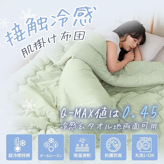 【商品情報】シングルサイズ:約幅140cm*奥行200cm 【素材】表地:Q-MAX値は0.45の新型接触冷感生地(ナイロン50%ポリエステル50%)裏地:タオル生地(パイル部分:綿100%・グランド部分:ポリエステル100%)中綿:上質なTEIJIN(帝人)中綿を使用し、品質が保障されている。 【メーカー】初期不良対応 :お客様を満足させるように努めていきますので、万が一、製品不良などがあった場合は、対象となりますのでお気軽にお問い合わせください。弊社にご連絡いただければ迅速に対応いたします。安心してお買い求め頂けます。