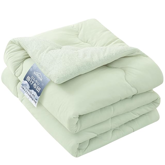 Softime 肌掛け布団 ひんやり シングル 夏用かけ布団 接触冷感掛ふとん 夏ふとん【冷感&タオル地両面可用】クールケット キルトケット リバーシブル 洗える 抗菌防臭防ダニ 吸水速乾 柔らかい肌触り(140×200cm・グリーン)
