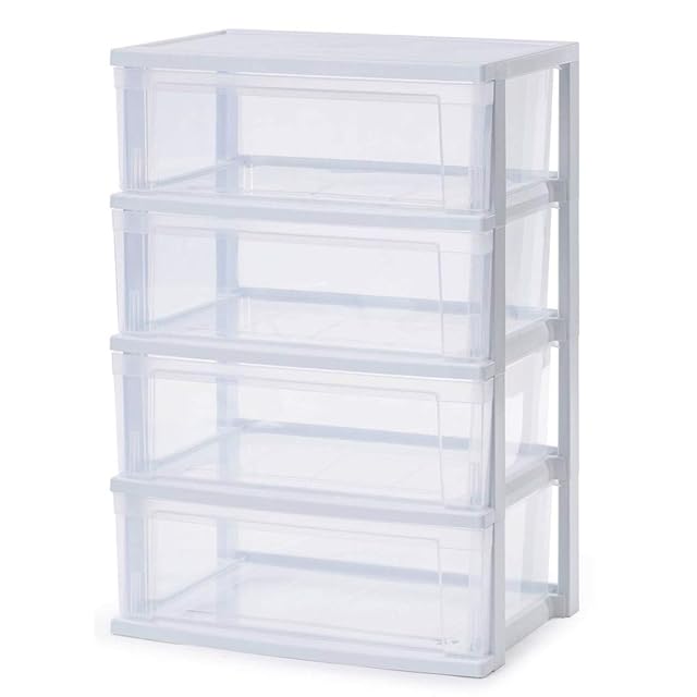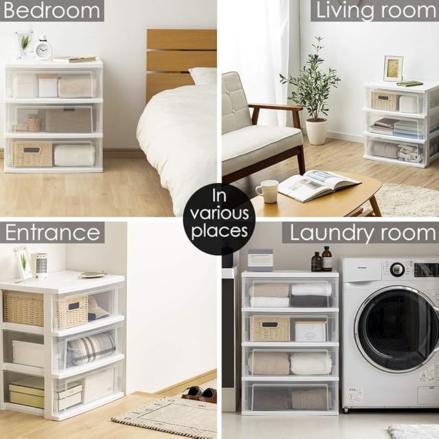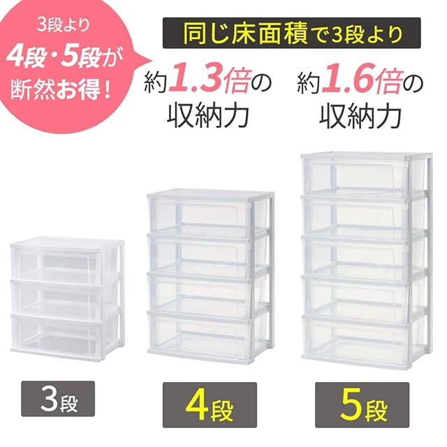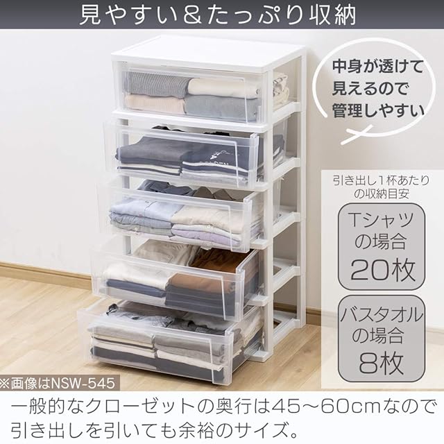 アイリスオーヤマ チェスト ワイド 4段 日本製 簡単組み立て 幅53×奥行き38×高さ77.8㎝ ホワイト/クリア プラスチック天板 NSW-544