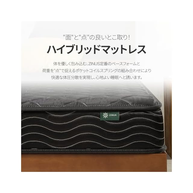 ZINUS ジヌス ベッド マットレス シングル ポケットコイル 15cm ブラック 硬め mattress コスパが良い 体圧分散 耐久性 5年 体を適度に支える 通気性 長持ちする 静音 厚め設計 ホテル品質 ベーシック BASIC