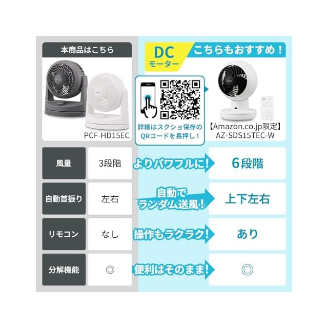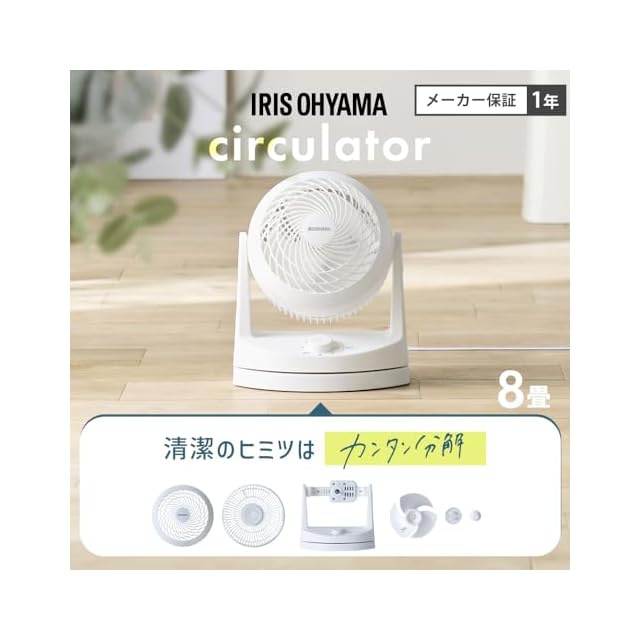 アイリスオーヤマ サーキュレーター 扇風機 静音 左右首振り 8畳 お手入れ簡単 PCF-HD15EC-W