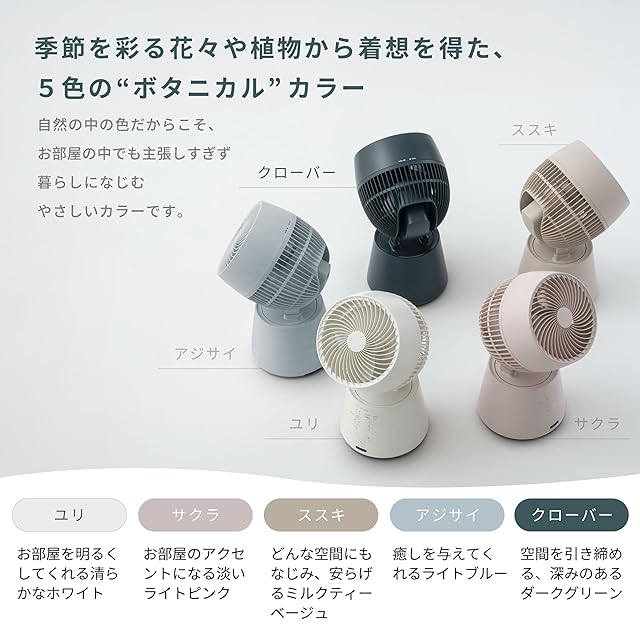 【シロカ公式ストア限定モデル】3D サーキュレーター botanical サクラ(ライトピンク)|23畳対応 5色展開 扇風機 サーキュレーター 3D首振り 風量調節8段階 衣類乾燥モード パワフル コンパクト リモコン付き デザイン家電 おしゃれ|SF-15A221(PL)